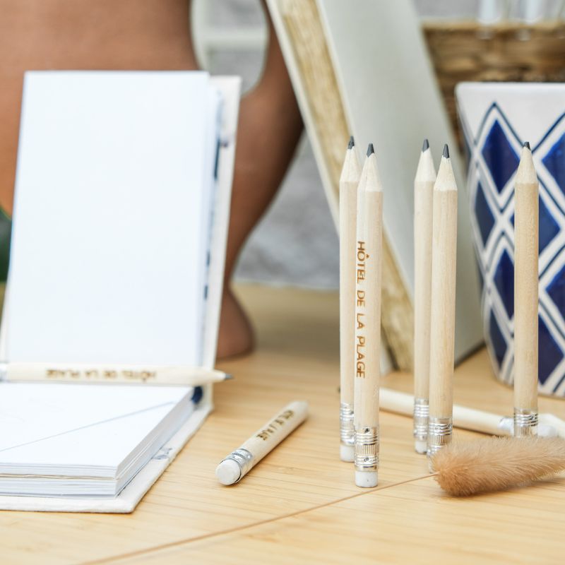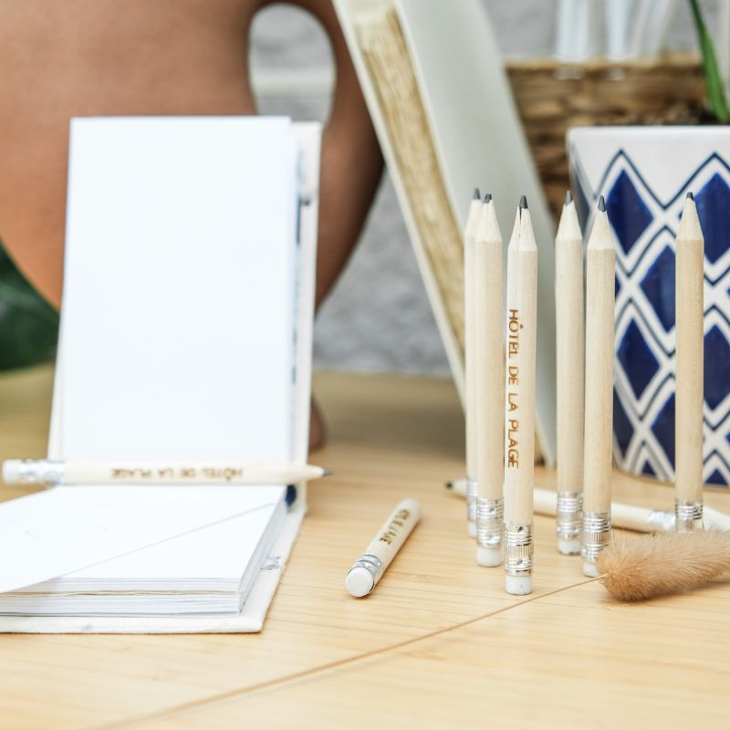 Pour un événement privé ou professionnel, le crayon de papier à personnaliser apporte une touche unique et mémorable. Avec un prénom, une date ou un mot doux, il devient un petit objet plein d’attention que l’on garde volontiers.